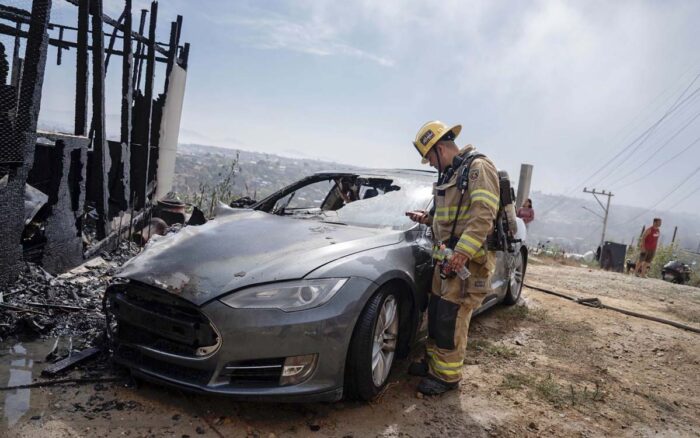 “Esto es algo inusual que nos toca por primera vez, ver un Tesla incendiado”, dijo Arturo Sánchez, coordinador de Bomberos quien atendió el siniestro.