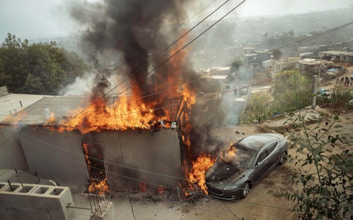 Según sus datos y un primer análisis el incendio fue provocado por la conexión ilegal en el poste de energía eléctrica, lo que de principio “ya vislumbraba un riesgo porque los vehículos eléctricos, principalmente Tesla, son muy especiales y por sus características hay que cuidar todos esos detalles”.