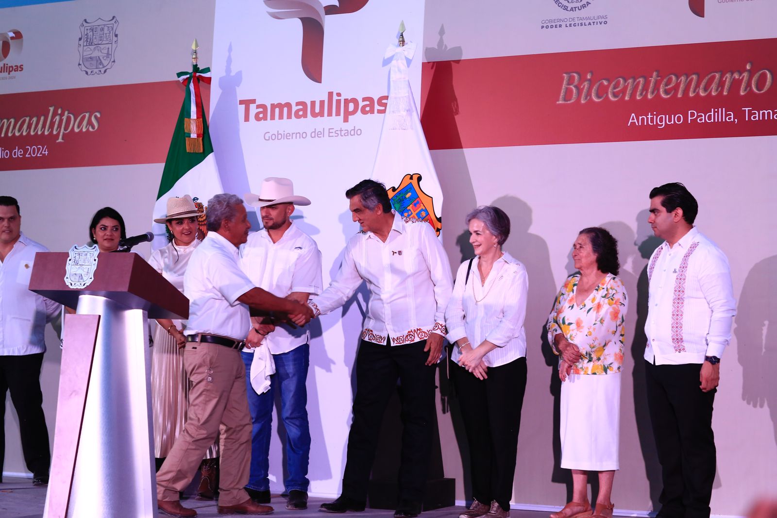 Como parte de los actos conmemorativos al Bicentenario de Tamaulipas, el gobernador Américo Villarreal develó diversas placas en sitios donde se registraron acontecimientos históricos en este lugar; entre ellas, una en memoria de los habitantes de la Antigua Villa de Padilla y de la ex Hacienda de Dolores, que en 1971 tuvieron que dejar su pueblo para dar paso a una nueva obra de la ingeniería mexicana como la presa Vicente Guerrero.
