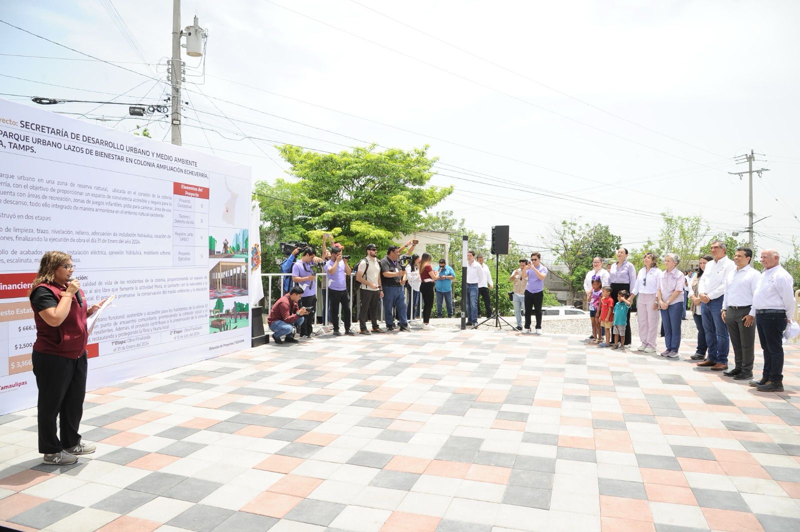 «Es un proyecto urbano que resume la colaboración entre los vecinos de la Colonia Ampliación Luis Echeverría, el Instituto Tamaulipeco de la Vivienda y Urbanismo, la Secretaría de Desarrollo Urbano y Medio Ambiente y el empeño e inspiración de nuestra querida doctora María de Villarreal, presidenta del sistema DIF Tamaulipas», explicó.