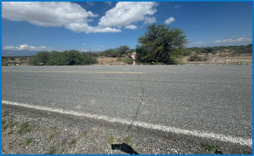 Explicó que las grietas de poco más de 6 kilómetros se encuentran ubicadas a 10 kilómetros de distancia del inicio de la autopista Mante-Ocampo-Tula en el punto del entronque al ejido Vázquez Gómez y destacó que, de acuerdo a lo diagnosticado por los geólogos, el fallo tiene una variable hasta 8 metros de ancho en algunos puntos y en los sondeos visuales se detectó una profundidad de hasta 4 o 5 metros en ciertos puntos, corriendo de norte a sur, superficial y subterráneamente.