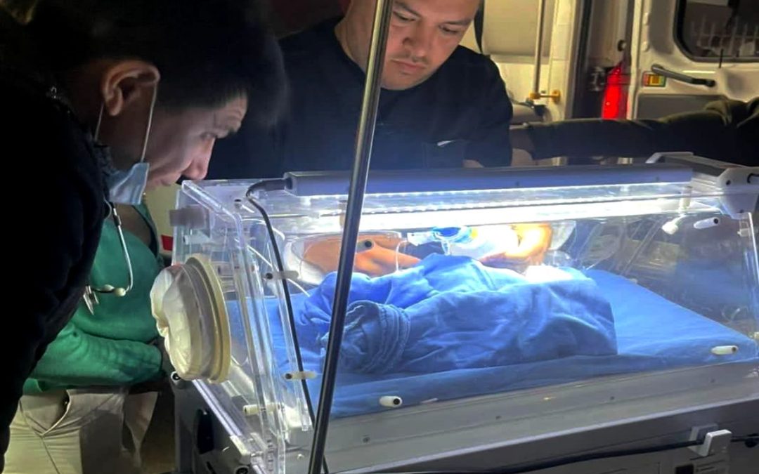 Las autoridades médicas informaron que se trata de un varón con aproximadamente 32 semanas de gestación, quien presenta dificultades respiratorias, sepsis prenatal e hipotermia.