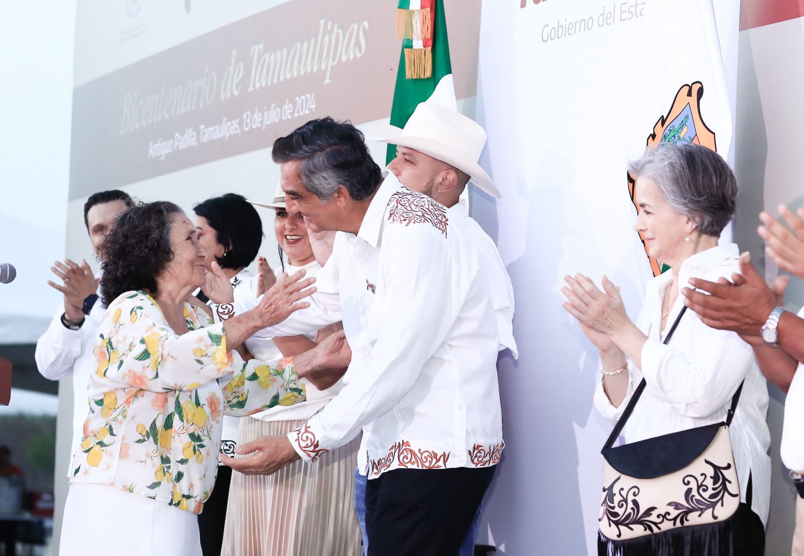 La ceremonia también contó con la participación de la señora María Cepeda, habitante del poblado, quien expresó su agradecimiento por la visita del gobernador Américo Villarreal Anaya y por realizar ese reconocimiento público.